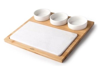Bandeja aperitivo marmol/bambu 3 cuencos 28,2 x 28,2 cm laco