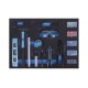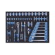 CONTIENE 130 PIEZAS 12 vasos de 1/4 largo 25mm, 6 vasos 1/4 largo 50mm, 2 adaptadores de 1/4 1/2, 1 alargo 1/4,2 alargo extension 50-100mm,1 llave carraca 1/4,1 llave carraca 1/2, 1 alargi giratorio 1/4 150mm, 13 vasos de 1/2,adaptador 3/8h 1/2m,l2 llave vaso bujia, 2 alargos 125-250mm,7 llaves combinadas, 4 destornilladores, 2 destornilladores aislados,5 destornilladores precision,1 alicates combinados, 1 alicates punta larga, 1 alicate corte diagonal,3 lapices, 1 voltimetro, 9 llaves hexagonales, 1alargo bit 1/4 100m, 30 puntas 25mm, 1 martillo mecanico, 1 nivel, 1 cinta metrica , 1 cutter, 5 cuchillas, 1 gafas de proteccion, 1pelacacables, 4 pinzas, 1 recogedor1 regla plegable, tornillos , terminales aislados