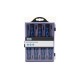 Estuche contiene 7 destornilladores cromo vanadio de largo 55 mm: 2 planos: 2,5- 3 2 philips: PH0 -PH00 3 torx: 8 - 9 - 10