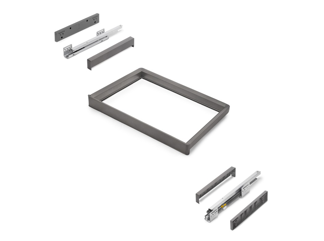 Incluye 1 bastidor, 1 juego de guías, 1 juego de distanciadores, 1 juego de tapas embellecedoras, 8 tornillos (Ø3.5x30 mm) y 4 tornillos (Ø4.5x20 mm), todo empaquetado de forma segura.