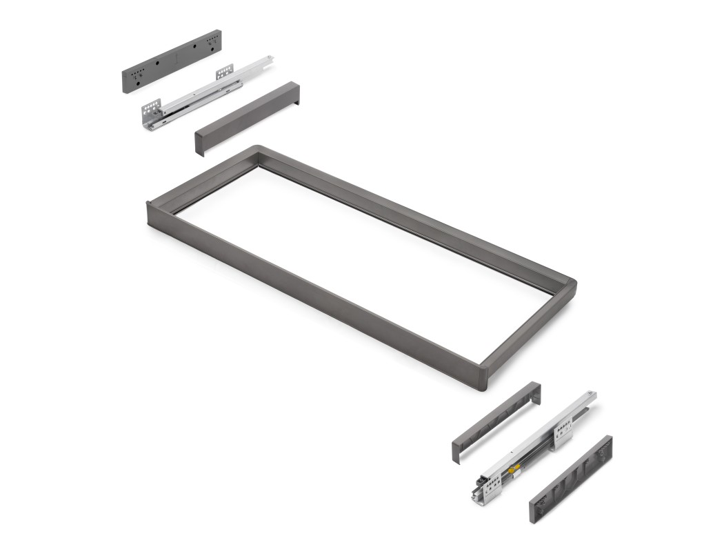 1 bastidor, 1 juego de guías, 1 juego de tapas, 1 juego de distanciadores, 8 tornillos Ø3,5x30 mm, 4 tornillos Ø4,5x20 mm