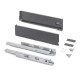 Las costillas laterales metálicas están fabricadas en acero con acabado pintado gris antracita, permiten una regulación 3D del frente: vertical mediante excéntrica de ±2 mm, horizontal ±1 mm, inclinación -1,5/+4 mm. Las guías son de extracción total con cierre suave y permiten una carga máxima de 40 Kg para el cajón.