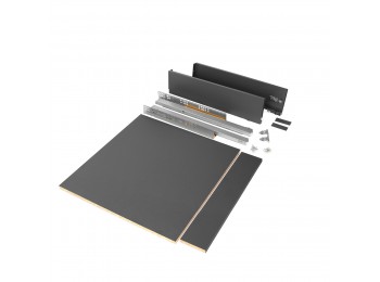Kit para cajón para cocina y baño Vertex con todos los elementos necesarios para su montaje. Es la solución óptima para los muebles de tu cocina, baño o armario con un elegante diseño en color gris antracita y blanco. Cada kit se compone de todos los elementos necesarios para el montaje de un cajón de altura 131 mm, dimensionado para un espesor de tablero de 16 mm para el fondo y la trasera del cajón. Incluye: dos costillas laterales, un juego de guías con cierre suave, un juego de tapas embellecedoras y las fijaciones para el frente del cajón.