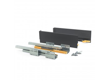Kit de herrajes necesarios para el montaje de un cajón de altura 131 mm y profundidad 400 mm, a excepción de la frontera, trasera y fondo.