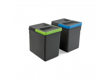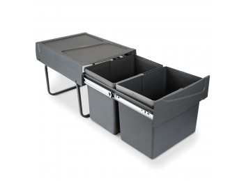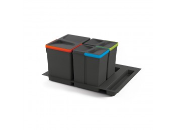 Contenedor para reciclar y clasificar los residuos domésticos diseñado para su montaje dentro de los muebles de cocina. La base extraible de este cubo de basura se fija a la parte inferior de los módulos, permitiendo una suave extracción de forma manual gracias a las guías de bolas que incorpora. Este contenedor es de fácil acceso gracias a la apertura automática de la tapa, que se acciona al extraer el contenedor.