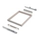 Este kit incluye todo lo necesario para montar 1 bastidor (1 marco de aluminio, 1 juego de guías, 1 juego de tapas embellecedoras de plástico y 8 tornillos Ø4x16mm) y 1 cajón organizador de madera con acabado textil en color gris piedra y textura de terciopelo.