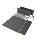 Los tableros incluidos para el fondo y la trasera son de aglomerado de partículas en color gris antracita y con superficie rugosa para dar una mayor resistencia superficial. Los tableros son de espesor 16 mm y están cortados a medida de módulos estándar (450 mm, 600 mm y 900 mm). No obstante, pueden ser cortados para adaptarse a la anchura de módulo que se necesite.