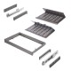 El kit incluye todo lo necesario para una instalación rápida y ordenada, como 1 bastidor zapatero, 1 juego de guías, 1 juego de distanciadores, 1 juego de tapas embellecedoras, 8 tornillos (Ø3.5x30 mm) y 4 tornillos (Ø4.5x20 mm), todo cuidadosamente empaquetado.