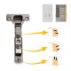 Para su instalación precisan de un taladro previo de diámetro 35 mm para la cazoleta. Y su fijación al tablero se realiza mediante tornillos incluidos. Asimismo se distinguen por su fácil instalación gracias al sistema automático de montaje en clip de la bisagra al suplemento. Además ambos disponen de tornillo excéntrico para una regulación rápida y cómoda.