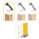 Sistema automático de montaje en clip de la bisagra al suplemento. Se recomienda utilizar en su instalación los tornillos que se incluyen.