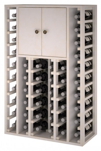 Elegante botellero fabricado en madera maciza de pino color blanco perteneciente a la serie Godello compuesto por 4 cajas para 6 botellas.
