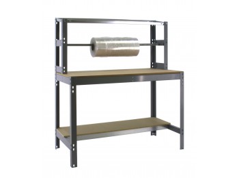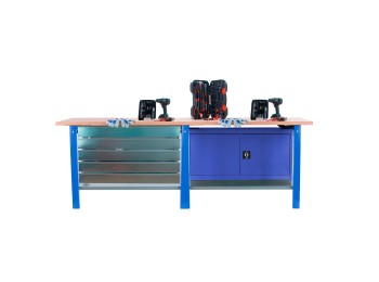 Bancos de trabajo de gran resistencia, hasta 800 kgs, y de fácil montaje. Bancos de trabajo que permiten el fácil acoplamiento de un cajón o de un armario, además de otros complementos. Aumento de 10 mm de ancho en el perfil de los bancos de trabajo para dotarlos de más robustez. El material utilizado para la superficie del banco de trabajo es MDF.