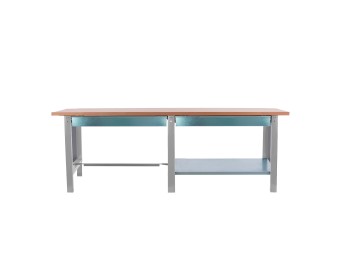 Bancos de trabajo de gran resistencia, hasta 800 kgs, y de fácil montaje. Bancos de trabajo que permiten el fácil acoplamiento de un cajón o de un armario, además de otros complementos. Aumento de 10 mm de ancho en el perfil de los bancos de trabajo para dotarlos de más robustez. El material utilizado para la superficie del banco de trabajo es MDF.