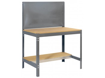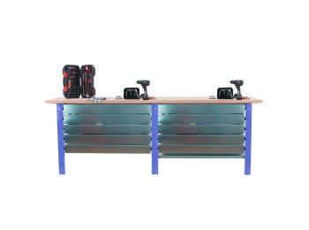 Bancos de trabajo de gran resistencia, hasta 800 kgs, y de fácil montaje. Bancos de trabajo que permiten el fácil acoplamiento de un cajón o de un armario, además de otros complementos. Aumento de 10 mm de ancho en el perfil de los bancos de trabajo para dotarlos de más robustez. El material utilizado para la superficie del banco de trabajo es MDF.