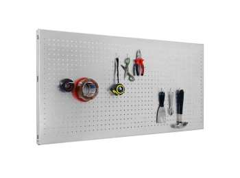 Panel metálico para herramientas + 8 ganchos. Color: gris: Dimensiones: 900x400. Organiza más y mejor tu taller o trastero. Incluye 4 tornillos + 4 tacos para anclaje a la pared. Fabricado en España. Se monta fácil siguiendo las instrucciones.