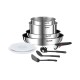 Ingenio Emotion, Set de cocina de 10 piezas, Mango Extraíble, Apilable, Revestimiento Antiadherente, Acero Inoxidable Set de 10 piezas: sartenes de 22/26 cm +cazos de 16/18 cm + tapas herméticas de 16/18 cm + 3 accesorios (espátula, cucharón, cucharón para pasta) + 1 mango extraíble. Compatible con cocinas de gas,eléctricas, cerámicas y de inducción. Indicador de temperatura. Apto para el lavavajillas. Tecnologia full induction.