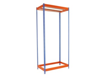 Estantería para prenda colgada, de color AZUL/NARANJA. Las dimensiones de esta estantería son: 2000x1500x750 mm. Y tiene una capacidad de carga de 30 kgs. Incluye ruedas. Es fabricado en España y se monta rápido siguiendo las instrucciones.El número de colgadores por módulo es: 2
