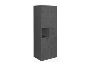 Casillero metálico mini con patas de color ANTRACITA y las puertas AZUL. Las dimensiones de la taquilla sin los pies son: 915x400x500 mm. Las dimensiones de la taquilla con los pies son: 1015x400x500 mm. Se entrega DESMONTADO e incluye un respiradero para mantener el interior ventilado, una cerradura de cilindro con dos llaves que se puede cambiar bajo pedido por cualquiera de las otras cerraduras de Simonrack y un etiquetero para aportar información acerca de su uso o su propiedad. Este casillero mini se puede acoplar fácilmente a otro casillero Simonrack del mismo tamaño o superior, del mismo o distinto color, adaptándose perfectamente al espacio que necesite el usuario, combínalos como quieras. Ideal para poner debajo de la mesa, en el baño para guardar toallas, en un vestuario etc.