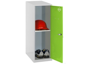 Casillero metálico mini de color GRIS y la puerta BLANCO . Las dimensiones son 475x400x500mm. Se entrega MONTADO e incluye un respiradero para mantener el interior ventilado, una cerradura de cilindro con dos llaves que se puede cambiar bajo pedido por cualquiera de las otras cerraduras de Simonrack y un etiquetero para aportar información acerca de su uso o su propiedad. Este casillero mini se puede acoplar fácilmente a otro casillero Simonrack del mismo tamaño o superior, del mismo o distinto color, adaptándose perfectamente al espacio que necesite el usuario, combínalos como quieras. Ideal para poner debajo de la mesa, en el baño para guardar toallas, en un vestuario etc.