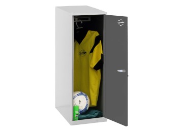Casillero metálico mini de color ANTRACITA y la puerta BLANCO . Las dimensiones son 915x300x500mm. Se entrega MONTADO e incluye un respiradero para mantener el interior ventilado, una cerradura de cilindro con dos llaves que se puede cambiar bajo pedido por cualquiera de las otras cerraduras de Simonrack y un etiquetero para aportar información acerca de su uso o su propiedad. Este casillero mini se puede acoplar fácilmente a otro casillero Simonrack del mismo tamaño o superior, del mismo o distinto color, adaptándose perfectamente al espacio que necesite el usuario, combínalos como quieras. Ideal para poner debajo de la mesa, en el baño para guardar toallas, en un vestuario etc.Este artículo incluye una bandeja que sirve para dividir el espacio en 2 y aumentar la comodidad del usuario.