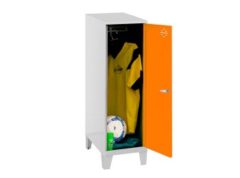 Casillero metálico mini con patas de color BLANCO y las puertas BLANCO. Las dimensiones de la taquilla sin los pies son: 475x300x500 mm. Las dimensiones de la taquilla con los pies son: 575x300x500 mm. Se entrega MONTADO e incluye un respiradero para mantener el interior ventilado, una cerradura de cilindro con dos llaves que se puede cambiar bajo pedido por cualquiera de las otras cerraduras de Simonrack y un etiquetero para aportar información acerca de su uso o su propiedad. Este casillero mini se puede acoplar fácilmente a otro casillero Simonrack del mismo tamaño o superior, del mismo o distinto color, adaptándose perfectamente al espacio que necesite el usuario, combínalos como quieras. Ideal para poner debajo de la mesa, en el baño para guardar toallas, en un vestuario etc.