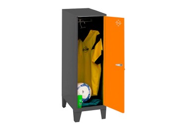 Casillero metálico mini con patas de color BLANCO y las puertas AZUL. Las dimensiones de la taquilla sin los pies son: 915x300x500 mm. Las dimensiones de la taquilla con los pies son: 1015x300x500 mm. Se entrega MONTADO e incluye un respiradero para mantener el interior ventilado, una cerradura de cilindro con dos llaves que se puede cambiar bajo pedido por cualquiera de las otras cerraduras de Simonrack y un etiquetero para aportar información acerca de su uso o su propiedad. Este casillero mini se puede acoplar fácilmente a otro casillero Simonrack del mismo tamaño o superior, del mismo o distinto color, adaptándose perfectamente al espacio que necesite el usuario, combínalos como quieras. Ideal para poner debajo de la mesa, en el baño para guardar toallas, en un vestuario etc.