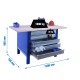 Banco de trabajo con tornillos y encimera de haya laminada, y cuenta con un estante inferior que tiene una capacidad de carga de 300 kgs aportándole mucha resistencia al banco de trabajo. Con 5 cajones metálicos con guías telescópicas para mayor facilidad de uso. La encimera de haya laminada de 32 mm de espesor que aguanta mejor el impacto y los golpes. Es de color AZUL. Las dimensiones de este banco de trabajo son: 865x1500x750 mm. La encimera principal tiene una capacidad de carga en estático de 1000 kgs de forma uniformemente repartida por la superficie. Está fabricado en España y se monta fácil siguiendo las instrucciones.