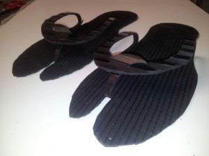 Usamos de plantilla esta silueta pero colocada al revés para tener una zapatilla de cada pie