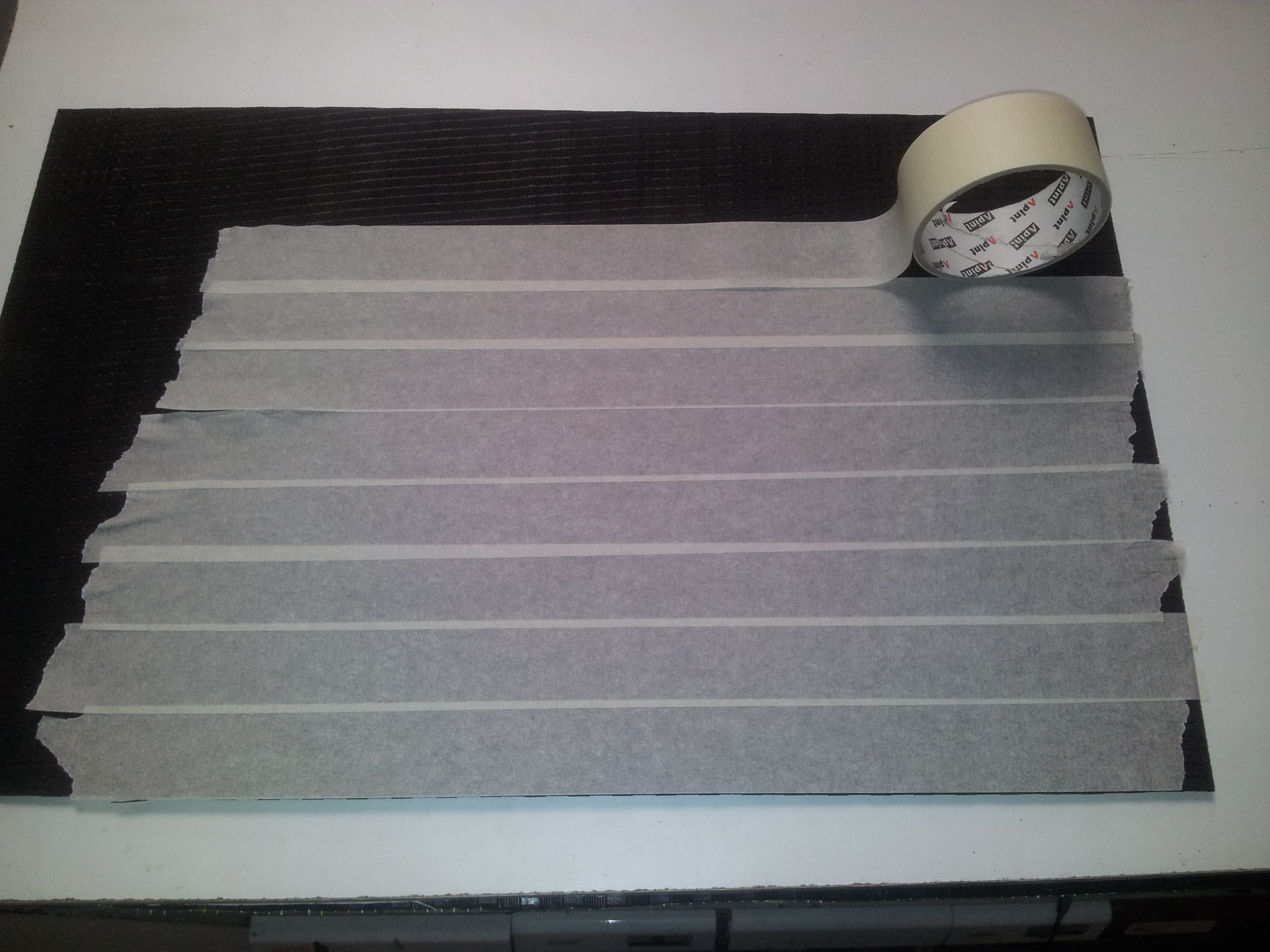 Pegamos la cinta de carrocero sobre la plancha de goma