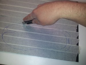 Recortamos con el cutter esa silueta, teniendo en cuenta que tenemos las marcas exteriores y las interiores