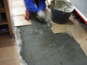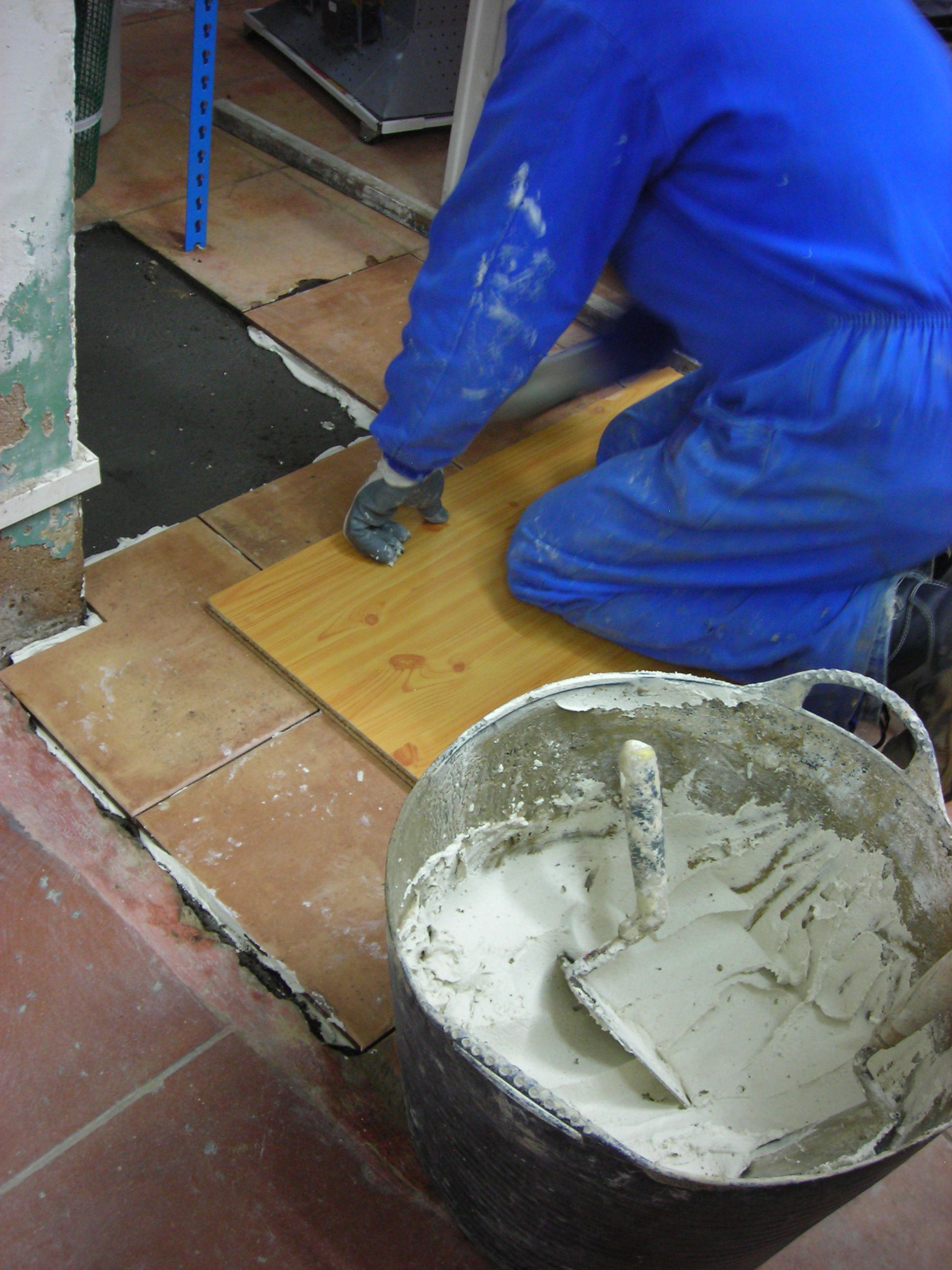 4º Cogemos algunas baldosas y las situamos en la zona a cubrir cortando aquellas que tengan que adaptarse a al espacio a reparar