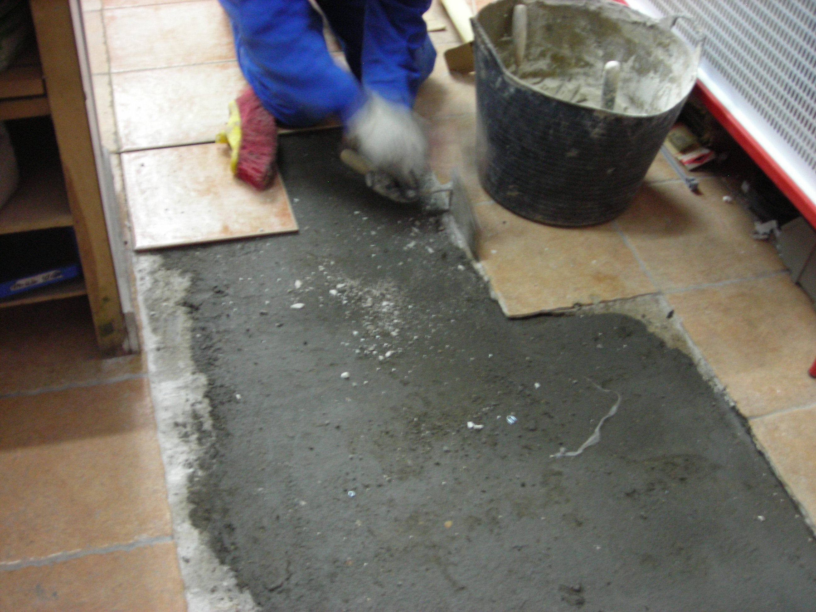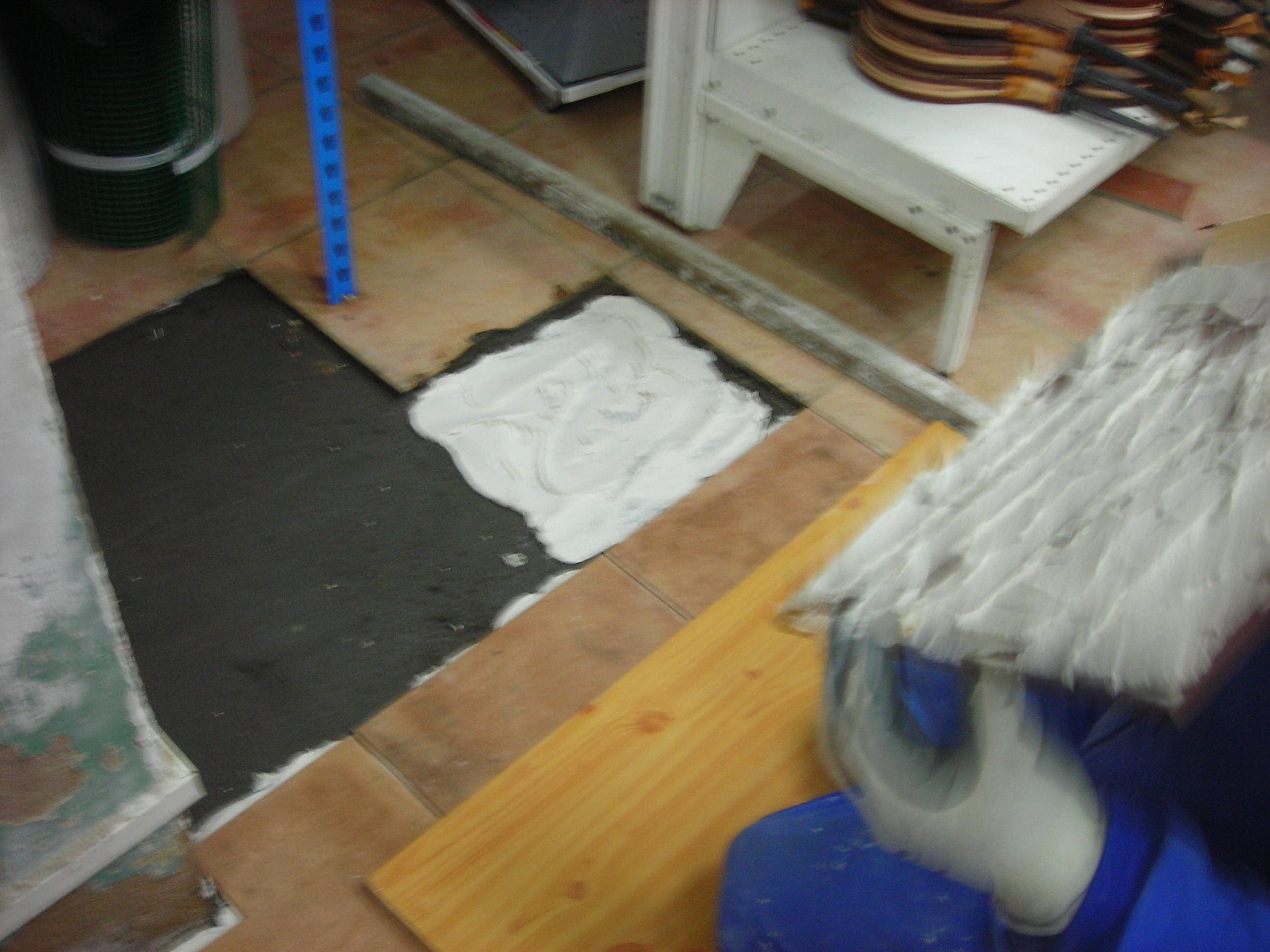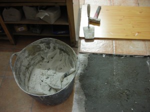 5º Damos la masa en el suelo y en la baldosa pasando a colocarla en su lugar