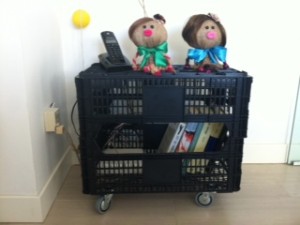 De esta forma tan rápida y sencilla tenemos una mesita que nos puede servir de mesilla, de revistero, para colocar el teléfono y el modem…