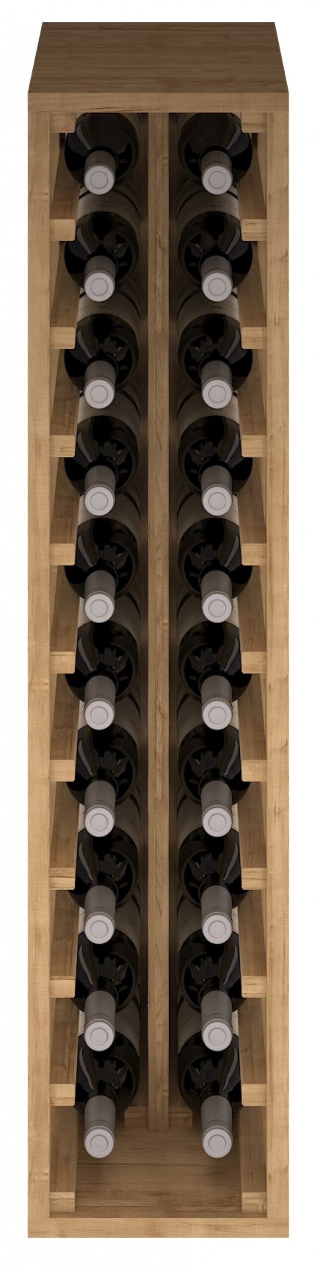 Este botellero está fabricado en madera maciza de pino (color roble claro) perteneciente a la serie Godello con una capacidad de 20 botellas. Orientado para almacenar botellas de Tipo Bordelesa/Borgoña 0.70 L.  El diámetro mínimo de la botella debe ser de 60mm. y el máximo de 90mm.