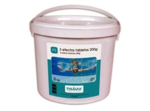 Tabletas de cloro: Estas tabletas son comprimidos sólidos que se disuelven lentamente en el agua de la piscina. Por lo general, contienen tricloro-s-triazinetriona como ingrediente activo. Las tabletas de cloro son convenientes, ya que se pueden colocar en un dispensador flotante o en un skimmer, y liberan lentamente el cloro para mantener niveles adecuados de desinfección.