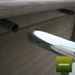 Para completar la instalación de una piscina Naturalis, se incluyen algunos accesorios importantes en el kit. 1/ Dos escaleras de acero inoxidable, una interior y otra exterior, para facilitar y asegurar el acceso a la piscina. 2/Un recubrimiento de piedra natural reconstituida por Fabistone. 3/También se incluye un kit de limpieza y un kit de fontanería que contiene válvulas, accesorios y tuberías para la bomba de hasta 5 metros de longitud de la piscina.